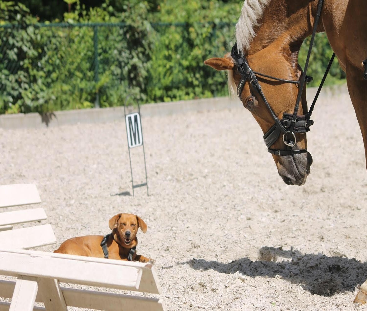 Saartje ging elke dag met mij mee naar de stallen waar ik training geef aan volwassenen en kinderen met paarden en pony’s. Al na een paar weken wist ze hoe ze met de paarden en pony's om moest gaan, ze was bij hen altijd rustig en bleef net ver genoeg bij de benen vandaan. Barbara kreeg soms bijna een rolberoerte als ze weer onder een paard door liep, maar het ging eigenlijk altijd goed... Ze was misschien wel het bekendste hondje in de paardenwereld, gekoesterd en geliefd door velen.
